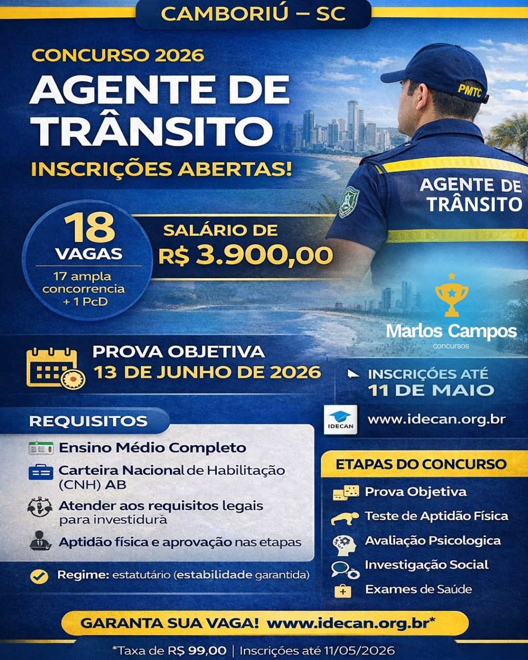 EDITAL PUBLICADO – CAMBORIÚ SC 2026!
