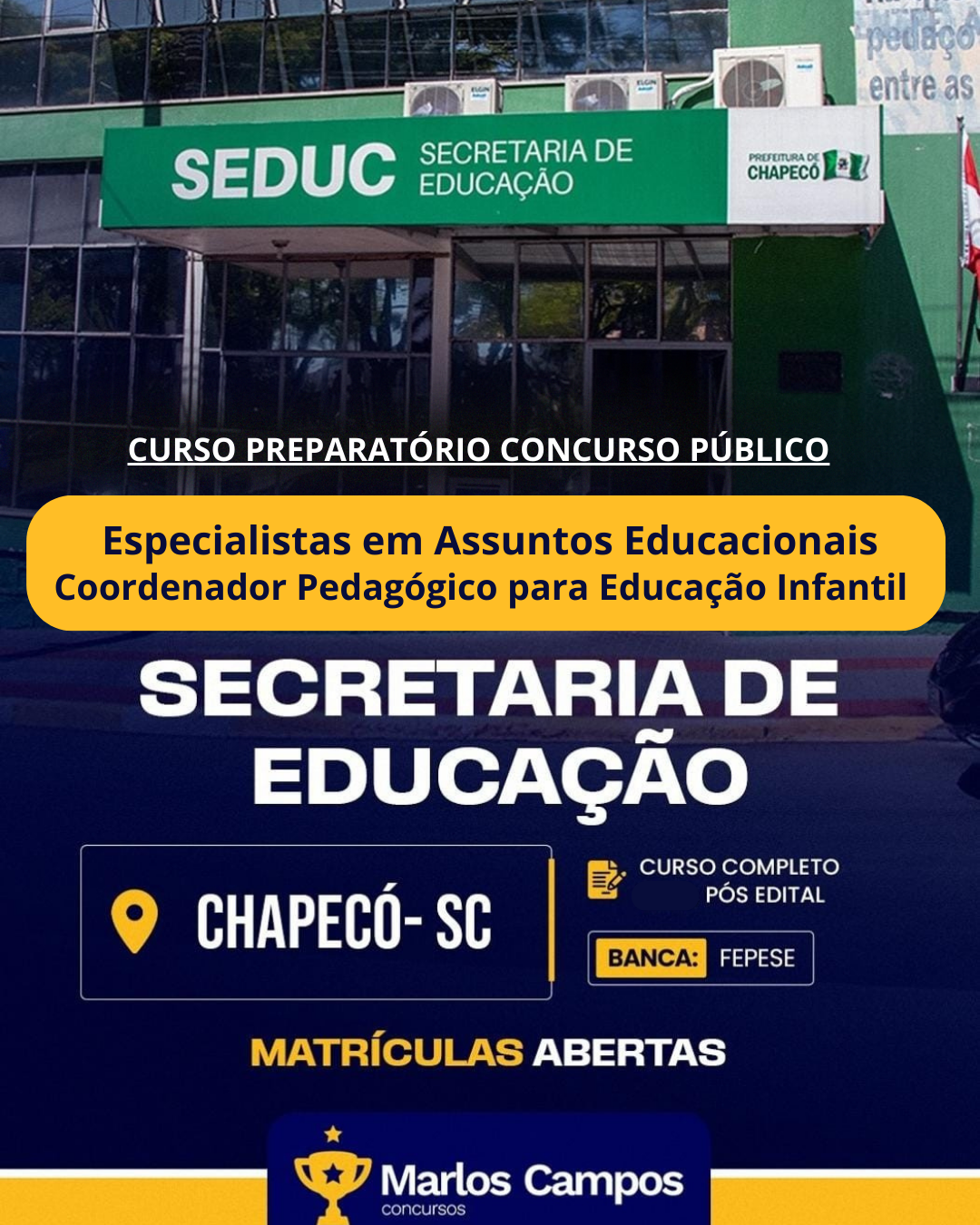 Curso Concurso Público Educação de Chapecó | PÓS-EDITAL | Coordenador Pedagógico para Educação Infantil