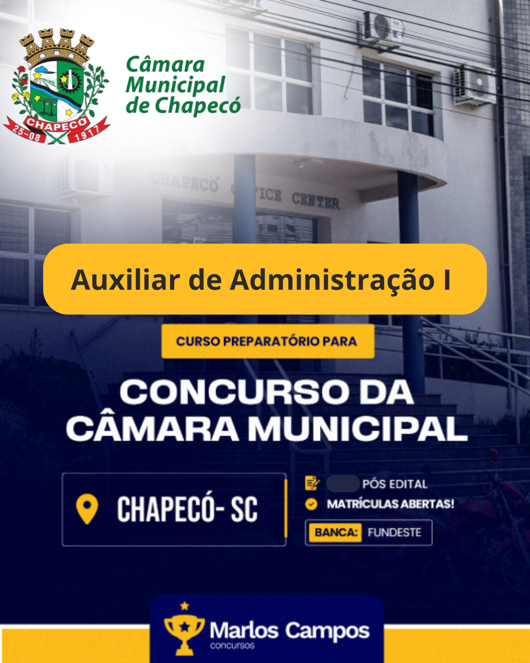 Concurso Câmara Municipal de Chapecó-SC Pós-edital | Auxiliar de Administração I- Aguardando Publicado