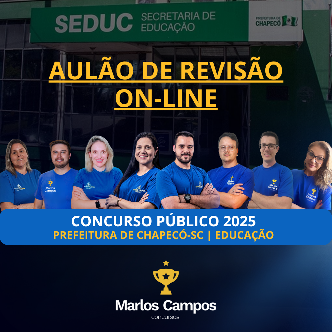 O Aulão de Revisão do concurso Educação Chapecó acontece no dia 18 de Outubro com foco total na banca e nas questões mais cobradas!
